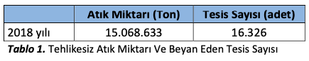 2018 yılında ülke genelinde 16.326 adet tesis tarafından tehlikesiz atık beyan formu doldurulmuştur.